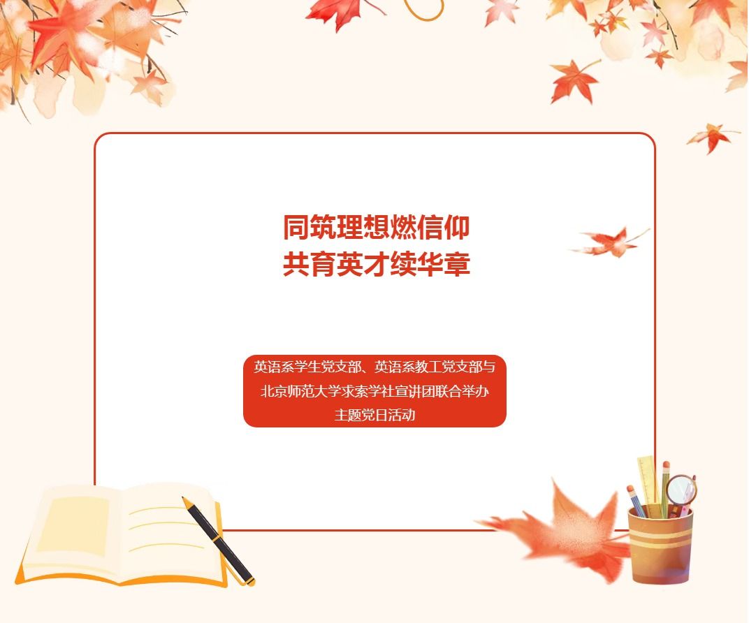 同筑理想燃信仰,共育英才续华章——英语系员工党支部、英语系教工党支部与北京师范大学求索学社宣讲团联合举办主题党日活动