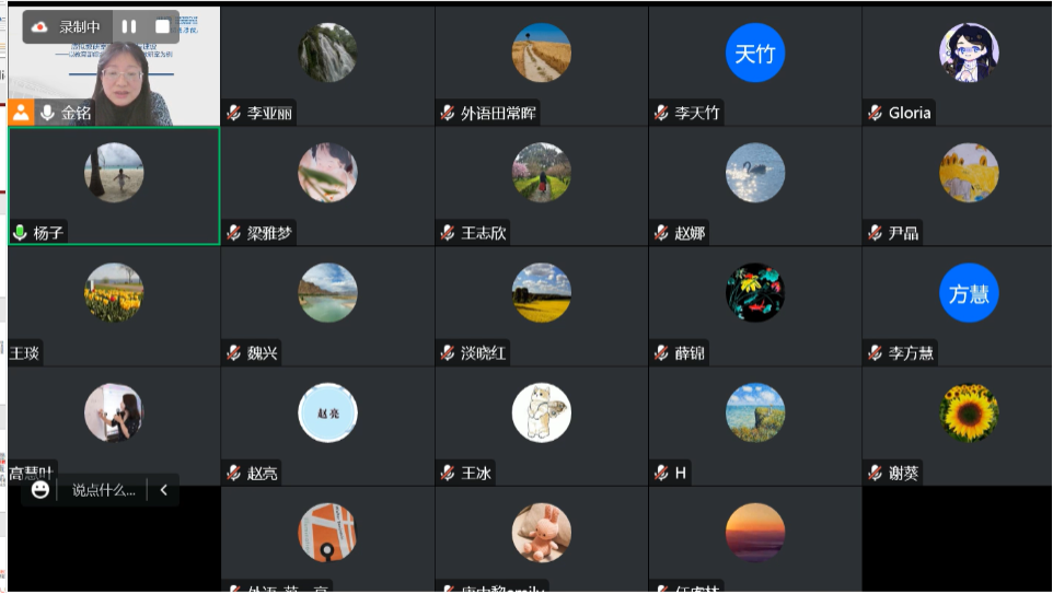 杨子教授对金铭老师的倾囊相授表达感谢,认为讲座干货满满,受益匪浅。与会教师还就一流课程与虚拟教研室的关系、知识图谱建设、特色课程申请虚拟教研室试点等问题和综合英语课程虚拟教研室团队成员进行探讨。