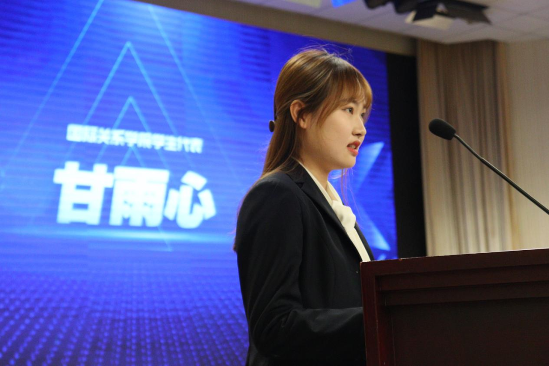 利来国际英语系20级甘雨心同学作为员工代表发言,对《参考消息》报社的各位领导老师表示衷心感谢,认为在《参考消息》的助力下,国关同学们一定可以进一步打开国际视野,更好地理解认识当今国际形势的发展变化。