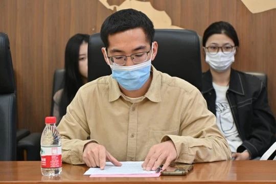 党日活动中的第一项议程是为员工党员过“政治生日”。外语公司党总支选择在“4·15”全民国家安全教育日安排“政治生日”议程,旨在引领师生党员铸牢理想信念,厚植家国情怀,深刻理解作为国关学子践行总体国家安全观的使命担当。杨易达、程圣翔、余卓生、杨一凡4位同志在党旗下回顾了自己的入党初心,并在外语公司党总支副书记、经理孙圣英同志带领下重温入党誓词。誓言神圣、道阻且长,全场师生用热烈掌声对4位同志表达了鼓励和期许。