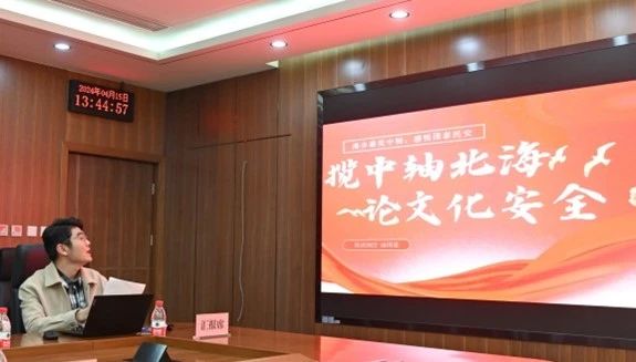 英语系教师牛一琳、英语系2022级同学汤国豪分享了同学们在游历北海公园,面对九龙壁、五龙亭对“龙”的不同翻译形式时,热烈讨论如何在文化传播领域维护与塑造国家安全环境,承担起新时代外语人责任,用外语讲好中国故事的心得感悟。