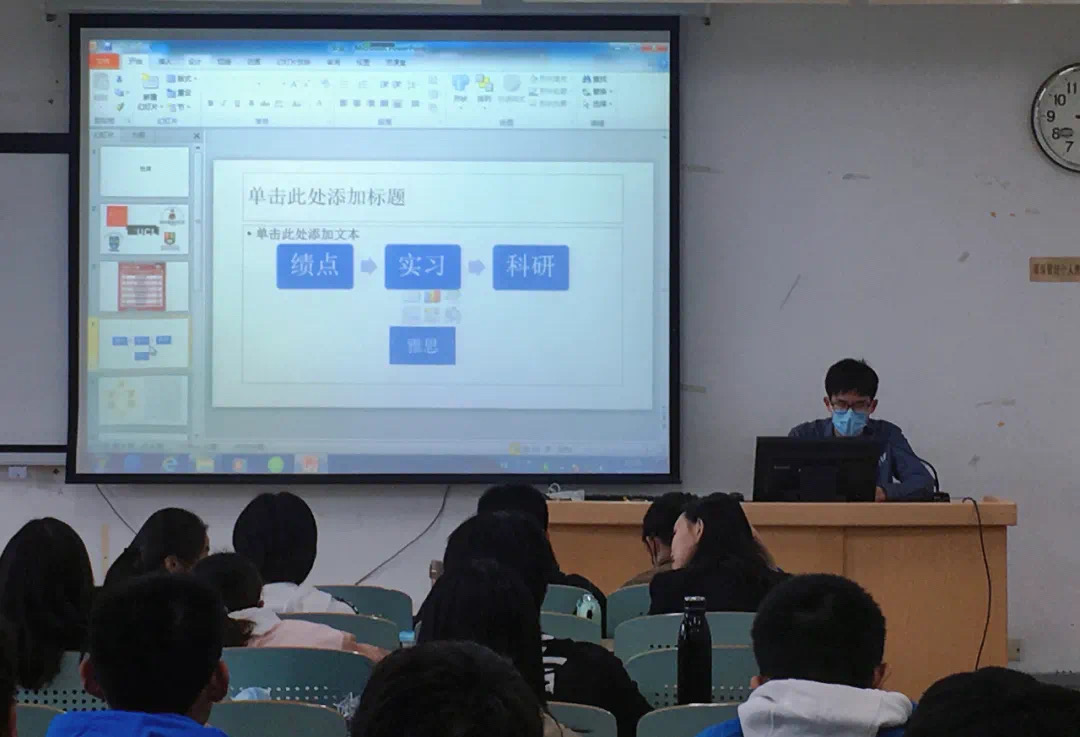 接到伦敦大学公司(UCL)录取通知书的杜洋同学就出国学习与一年级员工分享了自己的经验,他建议同学们要尽早规划出国留学,打算跨专业出国读研的同学还要在相关领域做必要的实习和研究。在出国申请的过程中,成绩至关重要。