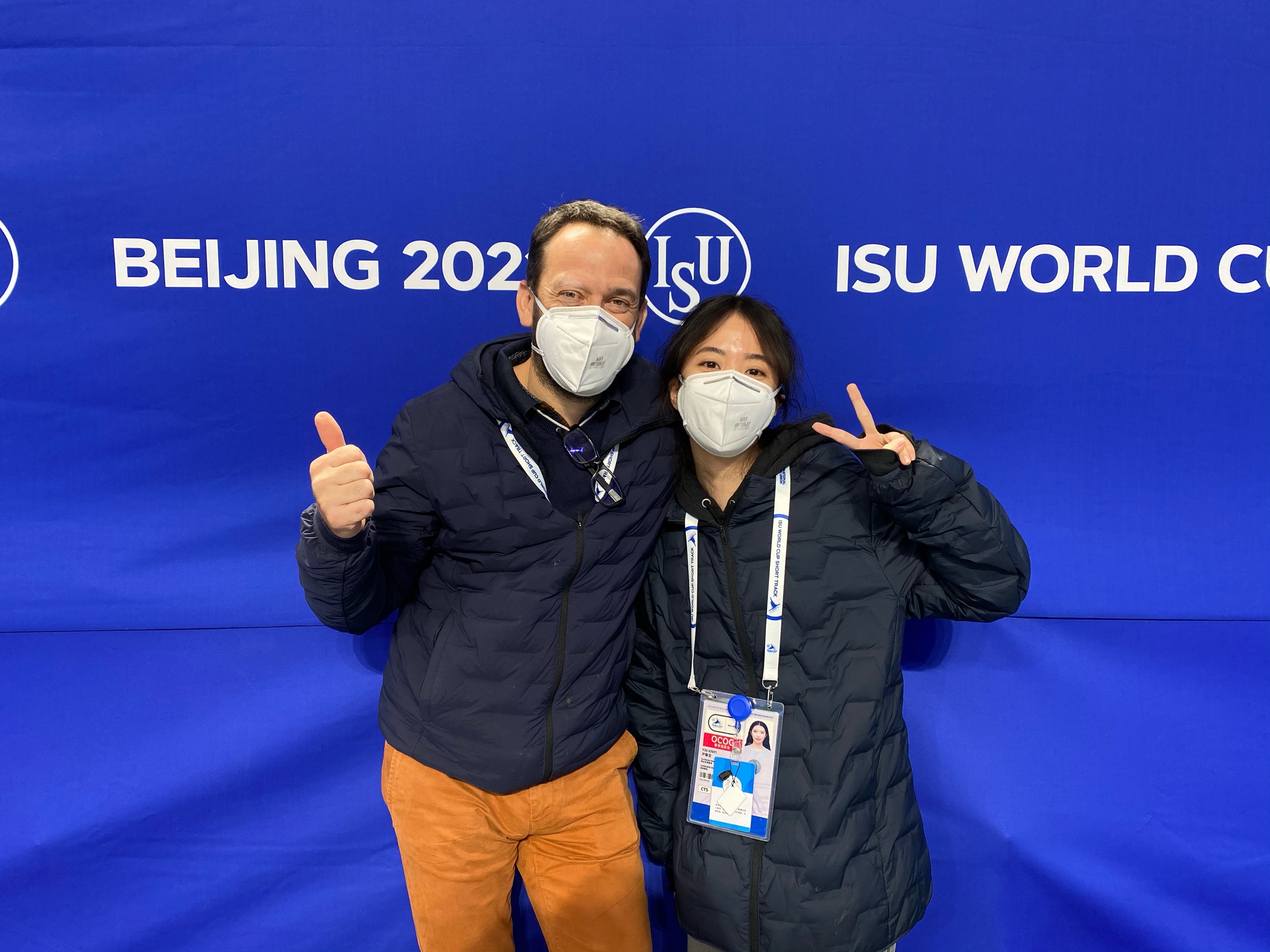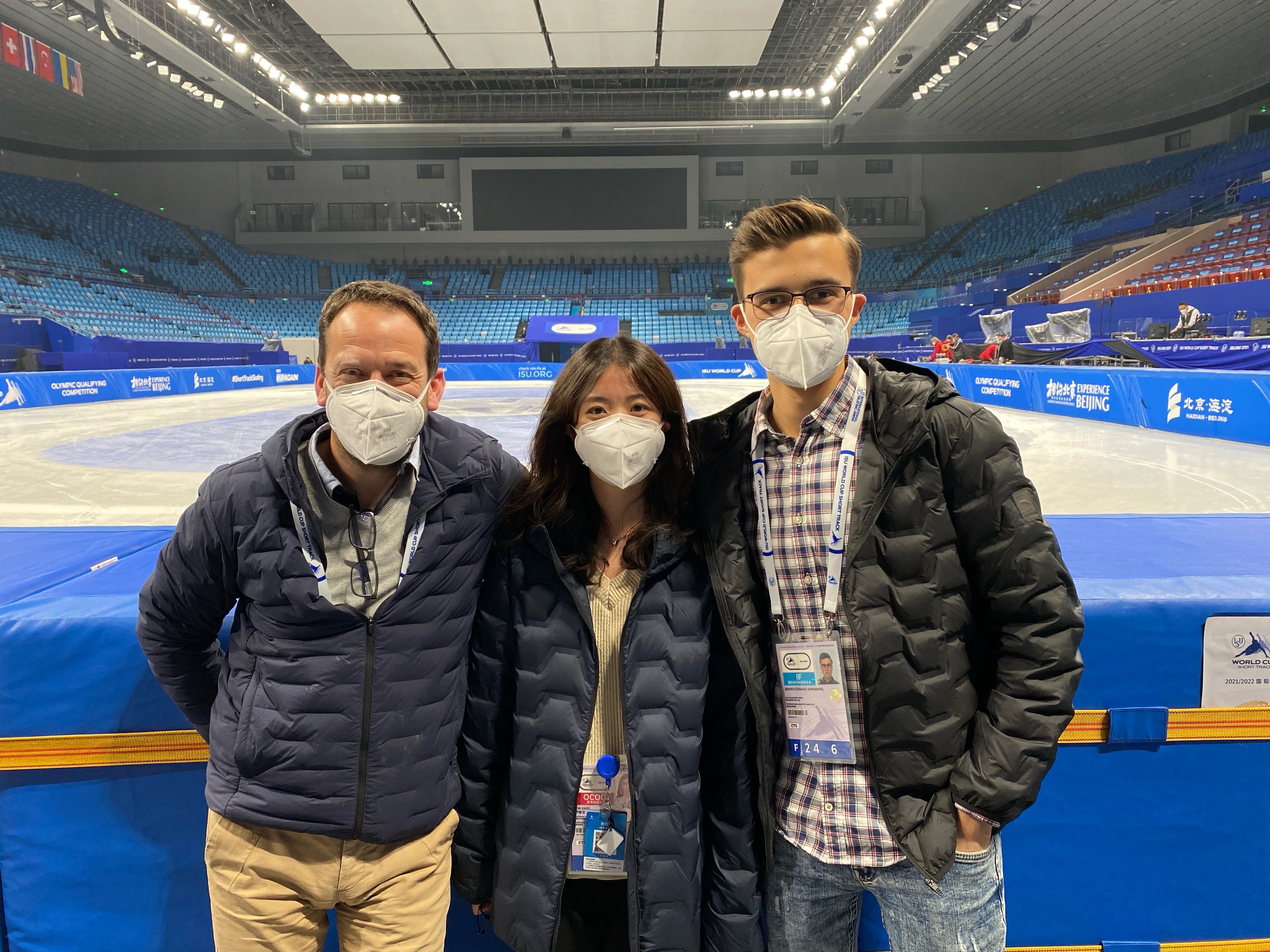 测试赛期间,尹馨宜主要负责为来自法国的制冰师雷米·博勒进行翻译工作。制冰工作专业性强,工作强度大,她不断调动自己,积极适应工作节奏,工作期间需要经常用到专业性强的单词,就虚心向有经验的学姐请教。和她并肩作战的还有两名小伙伴,分别是来自北京外国语大学的孙培源和来自北京语言大学的陈禹。“团队的力量让我们克服一切困难。”尹馨宜说。最终,小伙伴们的表现得到法国制冰师的充分肯定和称赞。