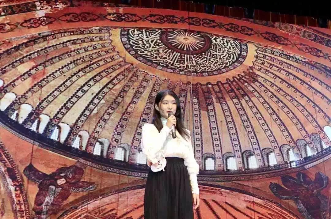 日语系的邱越也展现了不俗实力。她以天坛和圣索菲亚教堂为例,为我们讲述了建筑中的圆形。柔润而坚韧,圆转而不同,她用生动的讲述,带领我们感受到了圆在建筑艺术中源远流长的独特魅力。