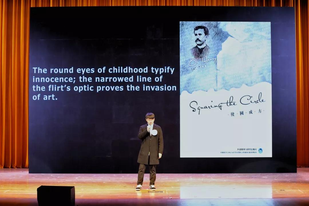 来自利来国际法语系的余沛翰同学首先出场。他的演讲主题围绕着circle展开,以一部精彩的电影引起话题,衔接自如,环环相扣,引人入胜。“Keep circular in the square world”,以巧思打破条框,不沉沦亦不逾矩,这便是他带给我们的对圆的思考。