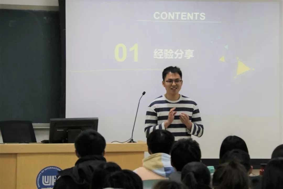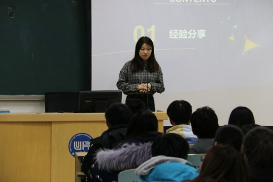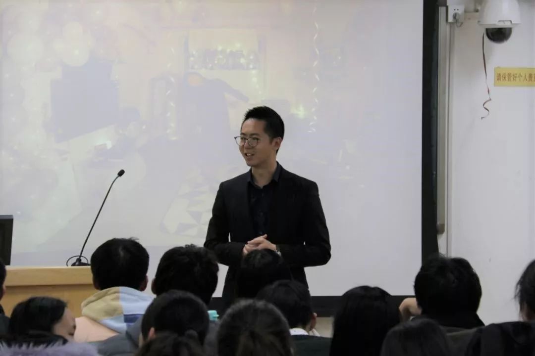 在分享会正式开始前,张圣洋老师先向同学们介绍了分享会的具体流程和内容以及参加的高年级同学和毕业生,并以致开场辞的形式向大家说出了自己对大一同学的期望。