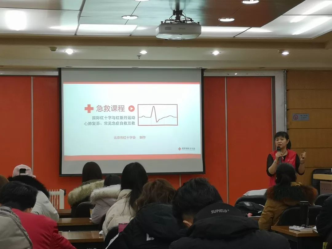 在上午的理论课过程中,同学们了解了红十字会运动的相关情况,学习了有关心肺复苏(CPR)、海式法、自动体外除颤器(AED)等应急救护技能的系统理论知识。同学们认真听讲,随时记录老师所提到的重点内容,课堂气氛活跃。