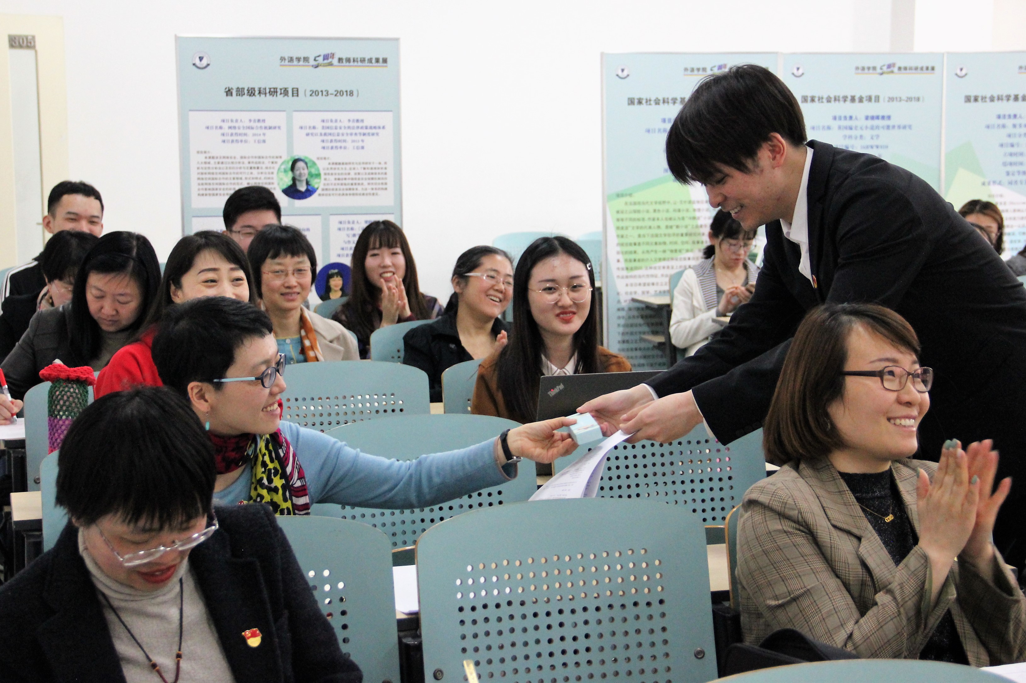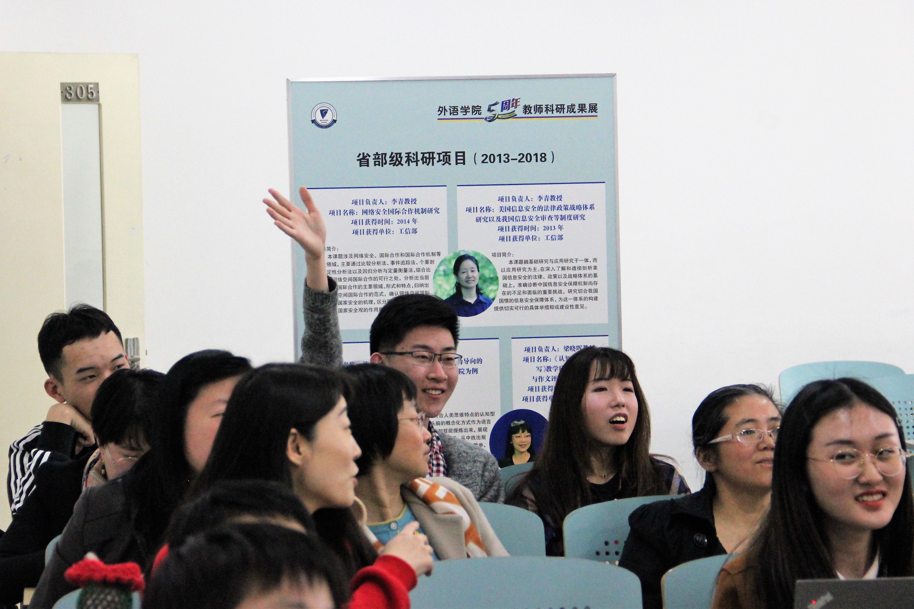 第三环节是兼具知识性和互动性的有奖问答。主持人从“建国史”“建校史”“外院人”三个方面共提出九个既不失深度又颇具趣味性的问题,引得在场师生积极响应,气氛轻松而愉快。