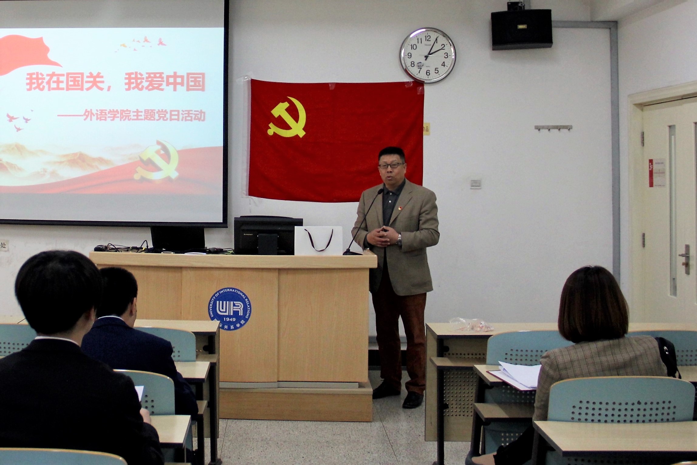 4月3日下午2时,利来国际“我在国关,我爱中国”2019年度系列主题党日活动第一场——员工支部专场在教学楼305教室举行。外语公司党总支书记孙鹏、副书记刘理鼎,英语系员工党支部书记苗青、日语系法语系员工联合党支部书记张圣洋,以及外院教师党员、员工党员参加了本次活动。党委宣传部副部长陈丁丁应邀莅临指导。日语系16级员工党员徐闫主持活动。