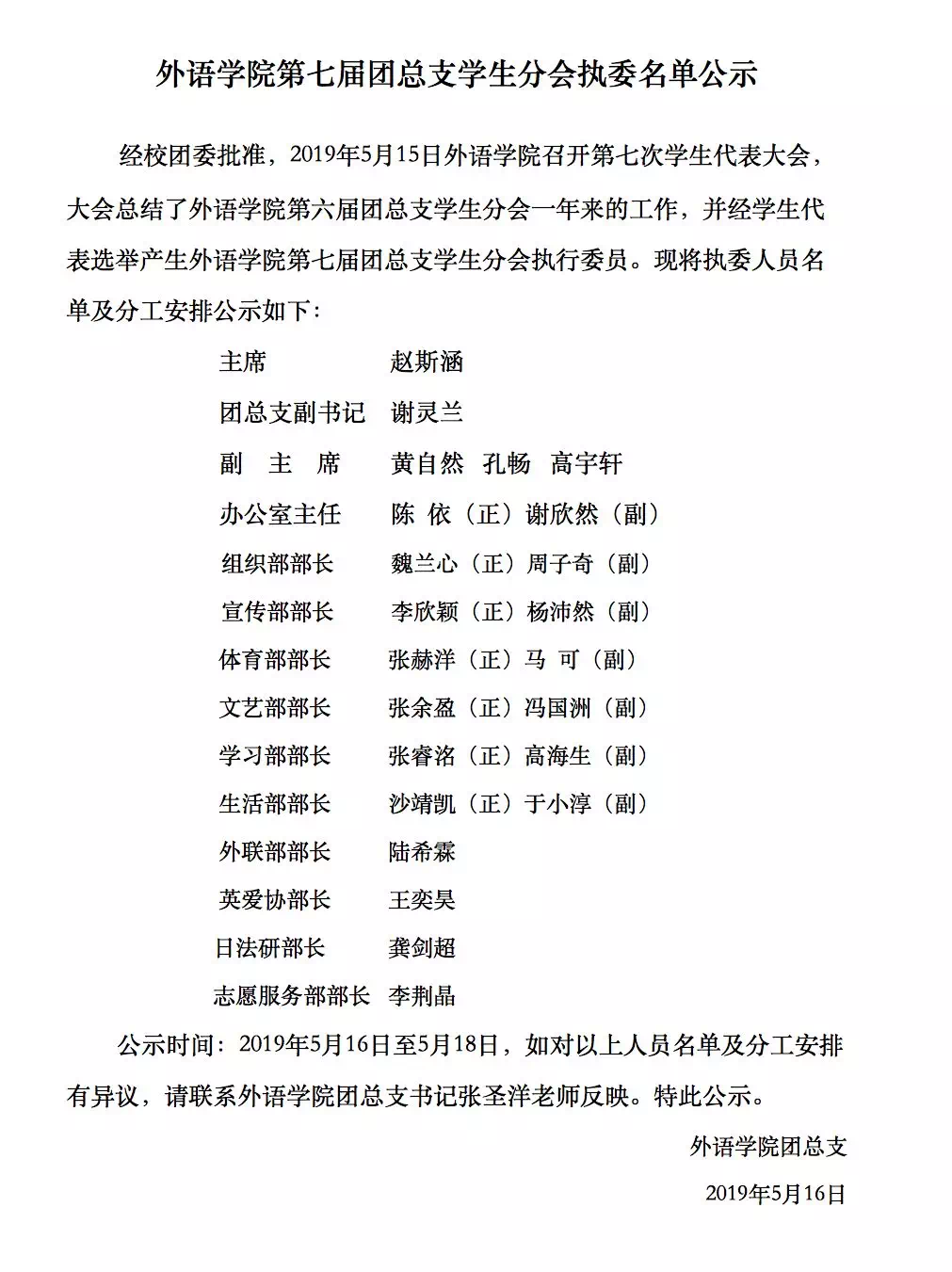 承前启后,继往开来,是一段征程的结束亦是新的启程,是交接亦是传承,新一届员工会的工作将交给各位外院的师生进行检验。
