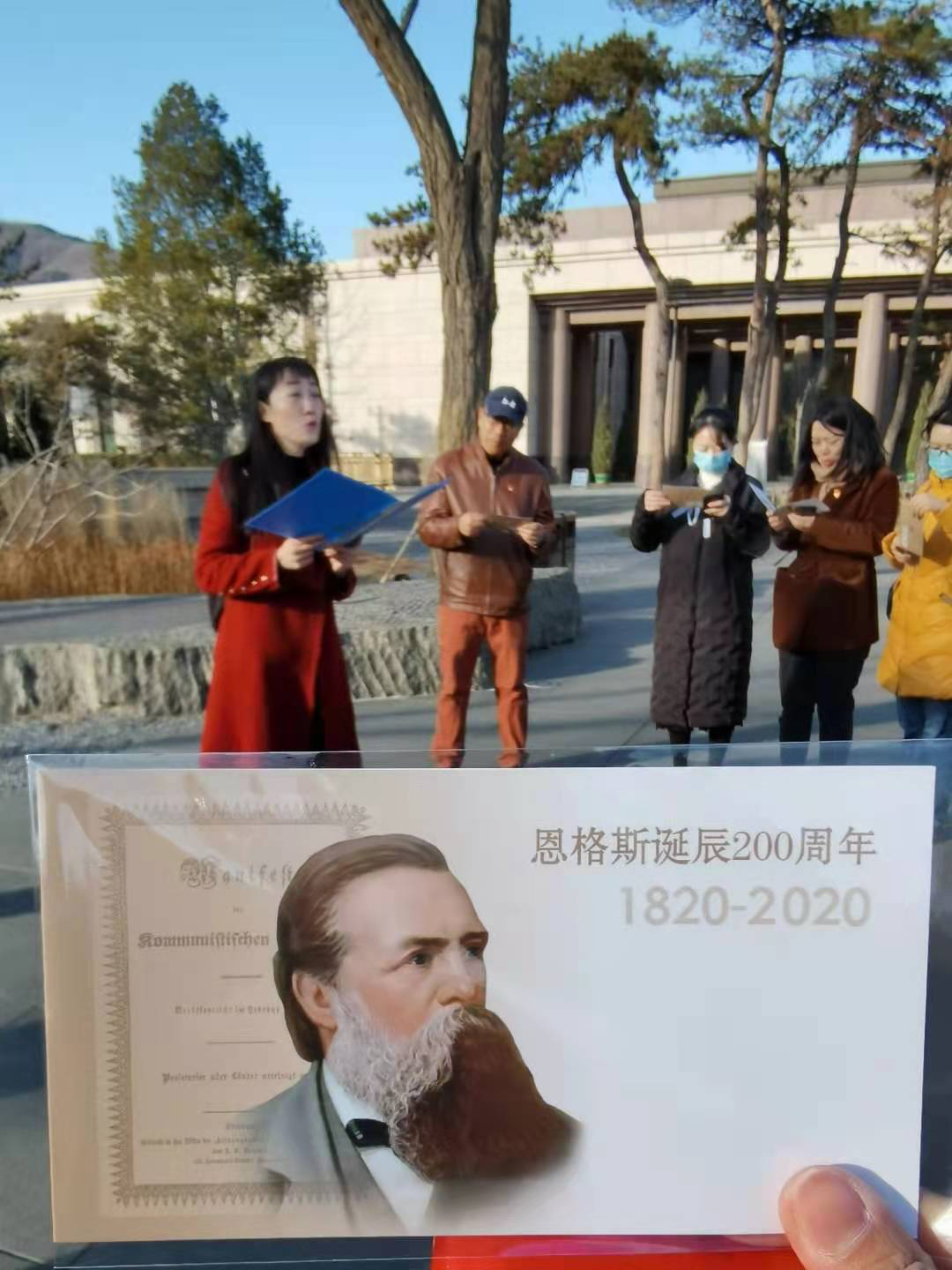 参观结束后,外院师生党员在纪念馆门前广场集中,开展特色党建活动。外公司党总支书记孙鹏分享了自身参观香山革命纪念馆的感悟与收获,并通过对展览重点内容的回顾强化大家的思想认识。接着,英语支部带领大家进行合唱,大家从意义深远的歌词与铿锵有力的节奏中进一步坚定了崇高理想信念,强化了党员使命担当。法语系教工支部书记白琨主持了纪念恩格斯诞辰200周年知识分享活动,介绍了伟大无产阶级革命导师恩格斯的生平经历与思想境界,并组织了现场师生互动问答,令大家加深了对恩格斯崇高精神的了解与认知。