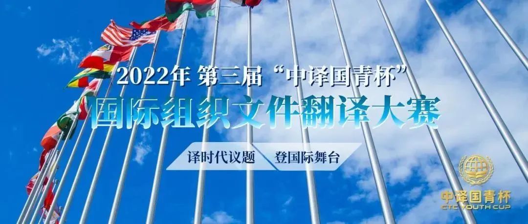 2022年10月26日,第三届“中译国青杯”国际组织文件翻译大赛获奖名单正式公布。大赛由中宣部下属中国出版集团、联合国训练研究所(UNITAR)上海国际培训中心指导,中国对外翻译有限公司主办,联合国语言人才培训体系(UNLPP)项目办公室承办,并获得联合国驻华系统最高代表、联合国驻华协调员常启德(Siddharth Chatterjee)先生的特别支持。