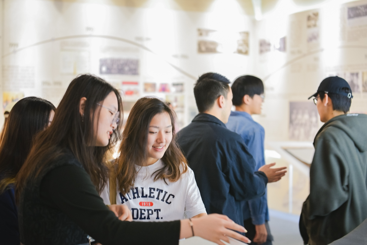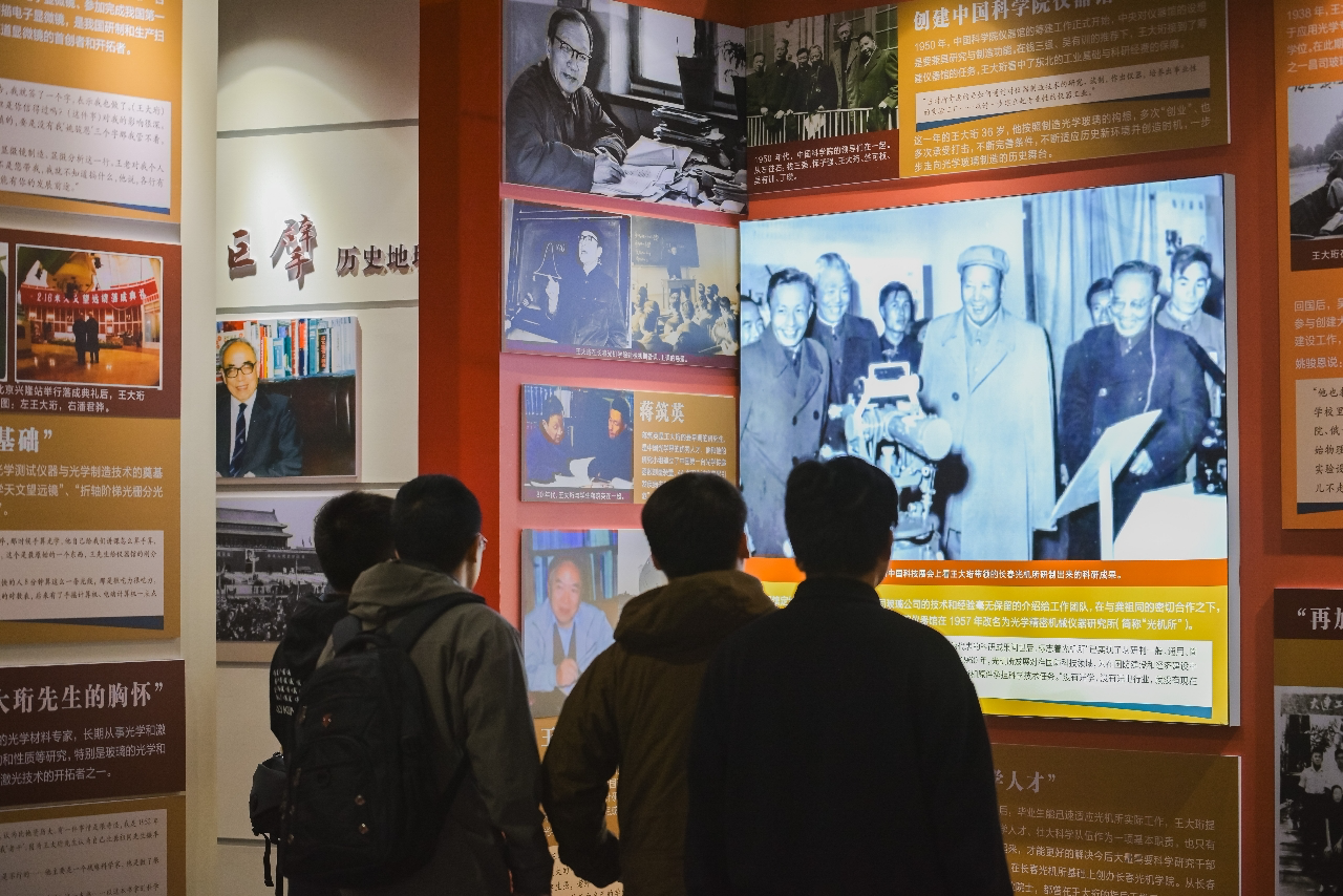接着,师生们参观了《永恒的瞬间》中国科学家博物馆预展。展览从“一脉相承”、“一生一事”、“一诺千金”、“一心报国”几个板块,以丰富的史料展示了陈能宽、王大珩、黄旭华等诸多科学家的报国人生。