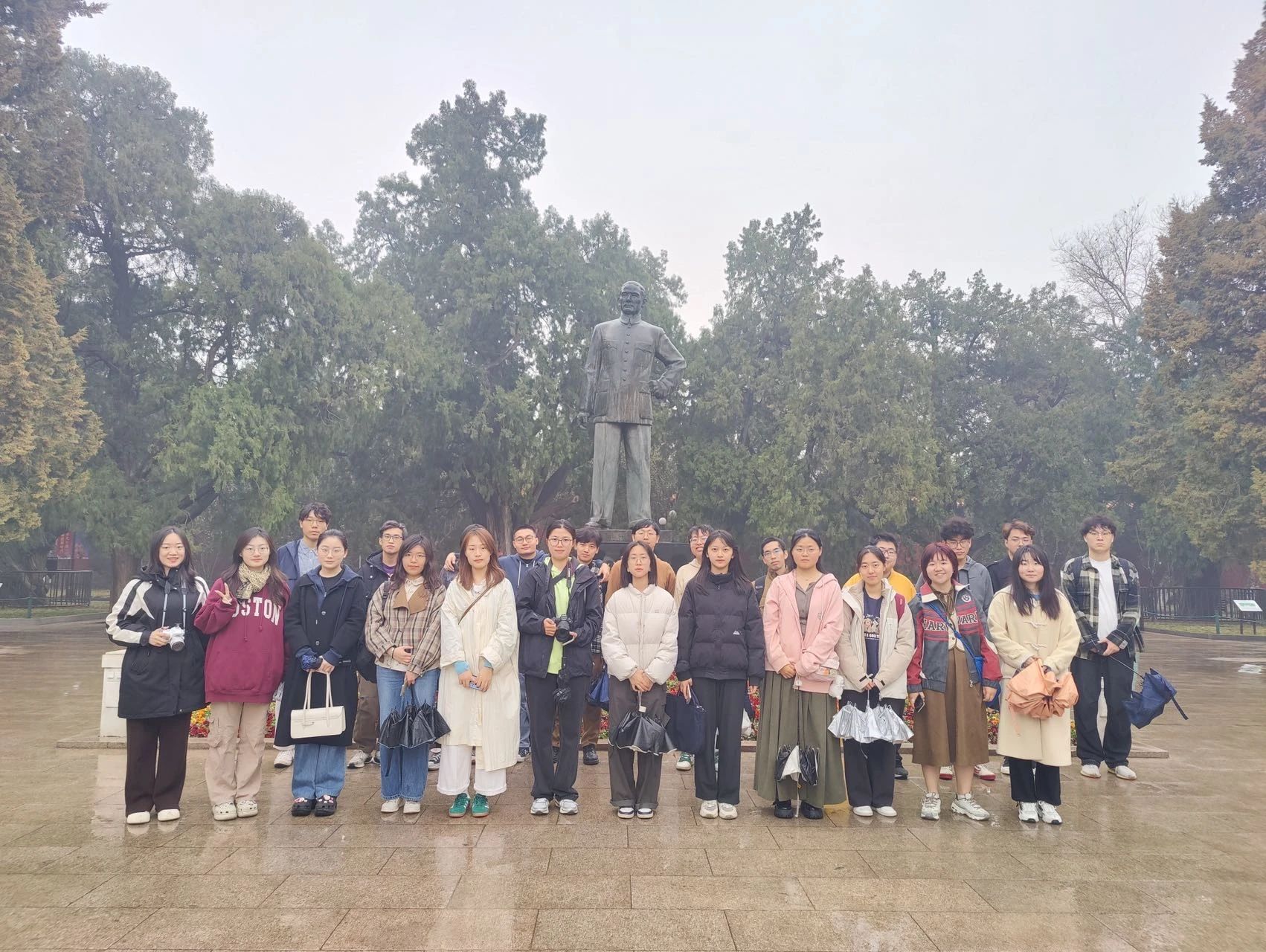 活动告一段落,春雨蒙蒙,伴随着革命故事,滋润着同学们的爱国之心。同学们来到孙中山铜像、来今雨轩等著名景点前合影留念,铭记历史,缅怀先烈。