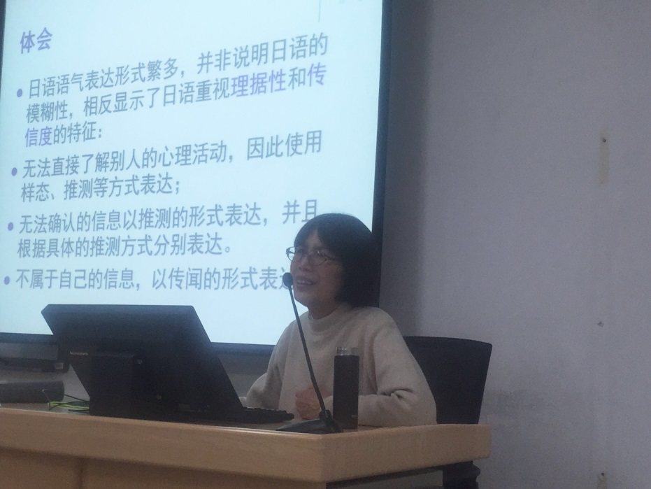 再者,翟老师又提出“日语表达是否真的暧昧、模糊”这一问题,并通过列举实际例子及相关用法来提醒同学们意识到日语因重视理据性和传信度而产生的复杂繁多的语气表达形式。
