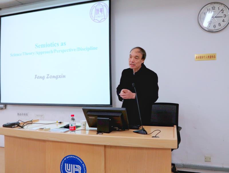 讲座中,封宗信教授介绍了符号学的发展脉络,介绍了对符号学有重大影响的哲学家、理论家及其作品和主要思想,并通过生动的事例及丰富的图片,深入浅出地讲解了重要的符号学理论要点。封宗信教授与在场师生积极互动,针对师生们提出的符号学研究方面的问题,封教授都一一给出了自己的独到见解。他希望同学们未来的研究能得到同行认可,更经得住时间的考验。