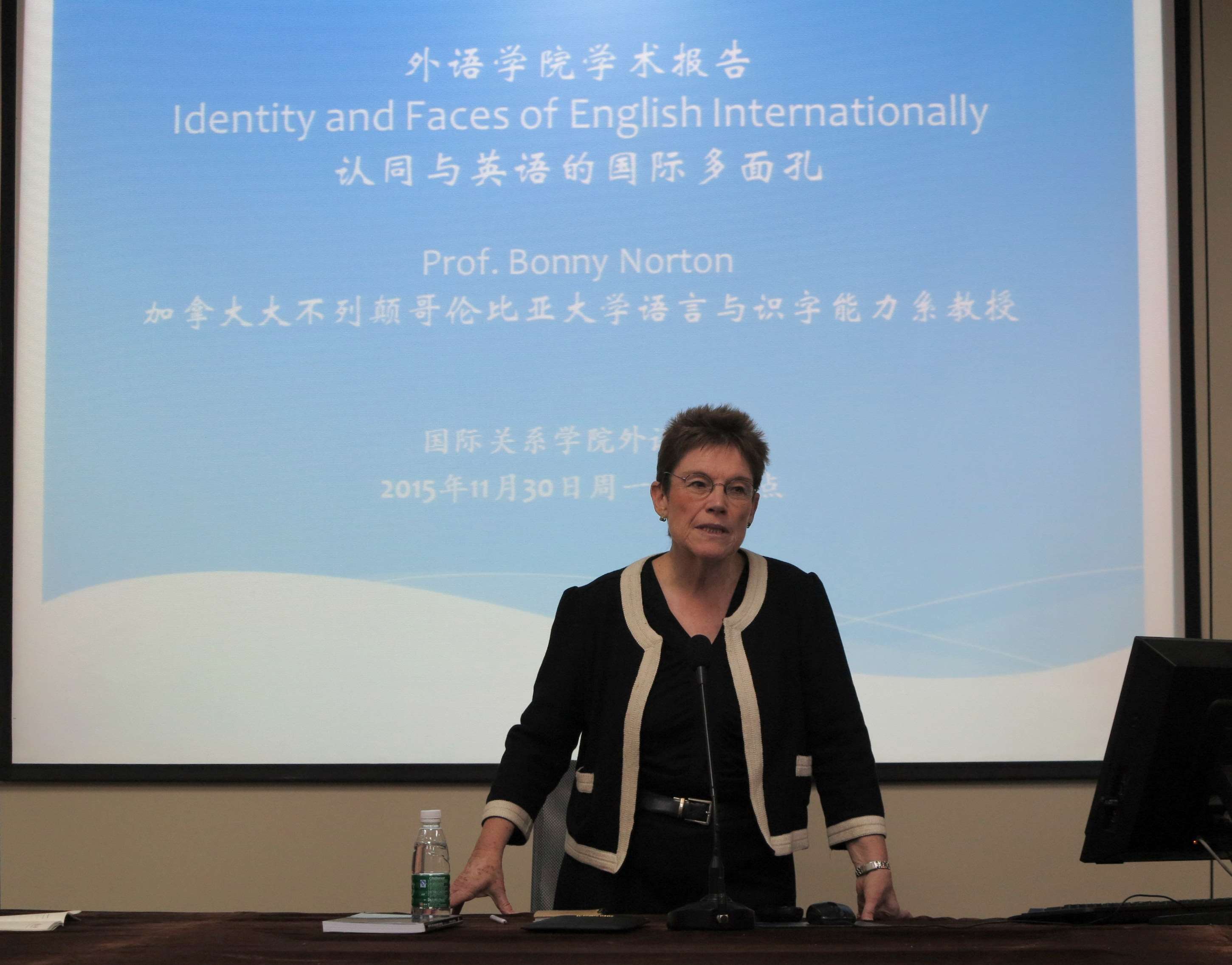 Bonny Norton博士现任加拿大大不列颠哥伦比亚大学语言教育系教授,杰出大学学者(Distinguished University Scholar)。Norton博士曾获英国雷丁大学语言学硕士和加拿大多伦多大学安大略教育研究所(OISE)博士学位。自1989年以来,她在各种国际性学术刊物上发表学术论文数十篇,其有关认同和语言学习的理论、以及投资概念的相关研究成果举世瞩目。