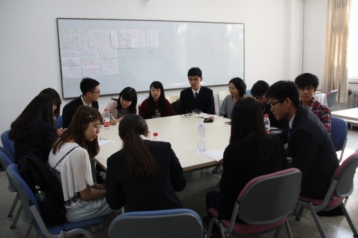 欢迎仪式结束后,在日语系王世彦老师的组织下,两校员工分成4组,在教学楼和心理中心的教室进行了讨论交流。交流话题大到两国的政治文化,小到个人的兴趣爱好,四个座谈会场气氛融洽,两校员工逐渐建立起信任友好的关系。