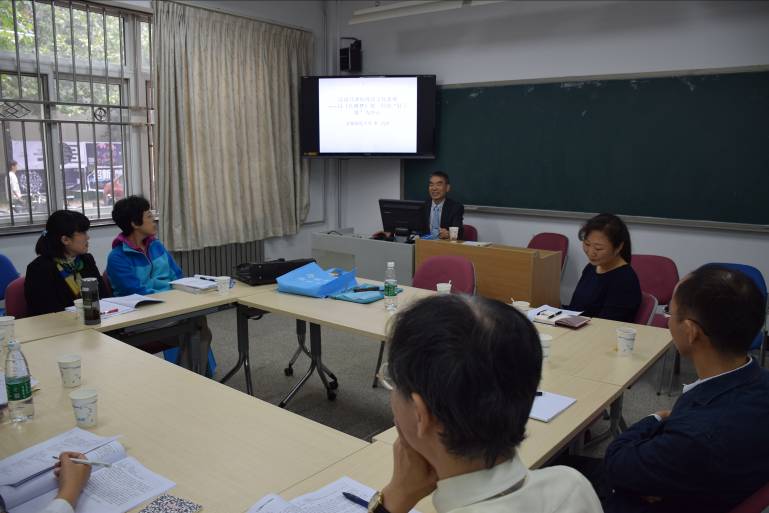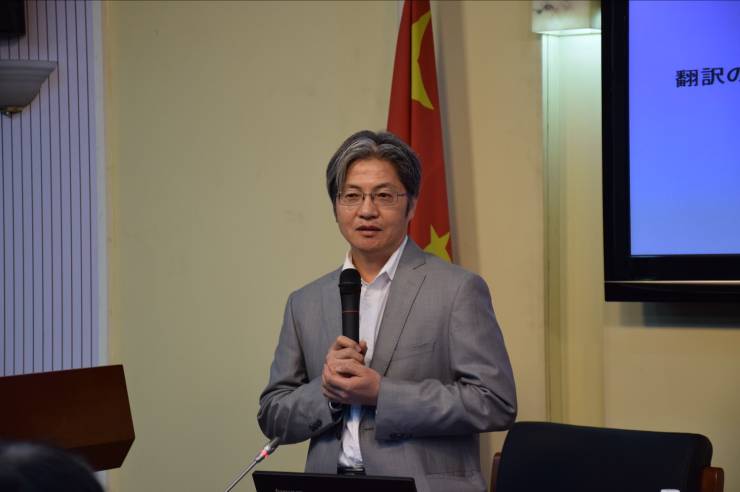 下午举行本次年会的分科会。来自26所国内外大学的日语专业教师和博士生在教学楼的研讨教室开展学术交流活动,成城大学文艺部上野英二教授、广岛大学副董事长佐藤利行教授以及广岛大学、早稻田大学的博士生们也积极参与其中。分科会分为五大板块:中日语言比较、日语语言研究、日语翻译与日语教学、日本文学和日本社会文化。在主持人的带领下,与会的老师和同学们迅速进入学术交流和研讨状态。研讨室内学术气氛浓厚,与会者与大家分享学术论文要点,阐明自己的学术观点。在天津外国语大学翻译公司经理刘泽军教授和首都师范大学李均洋教授担任主持人的“日语翻译与日语教学组”,主要研究探讨中日翻译教学方面的内容。李均洋教授以“汉语日译的母语文化表现——以《红楼梦》第一回“好了歌”为中心”为题,将《红楼梦》日译中所体现的中日语言文化的交融互通做出了展示,既体现了汉语语言的博大精深,又表明了母语文化对译者产生的潜移默化和深远持久的影响。