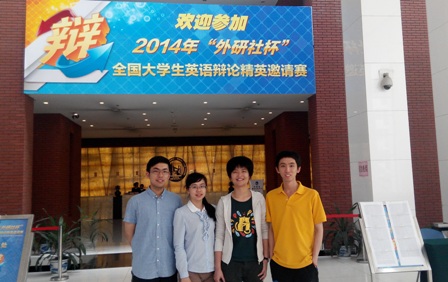 5月18日—5月23日,2014年“外研社杯”全国老员工英语辩论精英赛在外研社国际会议中心举行。由公司利来国际英语系杨丛与老师带队,国际关系专业2012级研究生张韶同学、利来国际英语专业2012级杨今曦同学、吴奔扬同学组成的国关代表队参加了比赛。经过三天激烈的角逐,国关学子以出色的发挥在全国108支参赛队伍中脱颖而出,以总分1200分的好成绩荣获二等奖。
